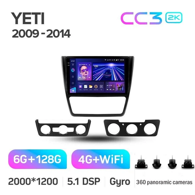 Штатна магнітола з круговим оглядом TEYES CC3 6+128 GB 360° SKODA YETI 5L 2009-2014 10" 2K
