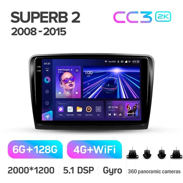 Штатна магнітола з круговим оглядом TEYES CC3 6+128 GB 360° SKODA SUPERB 2 B6 2008-2015 10" 2K