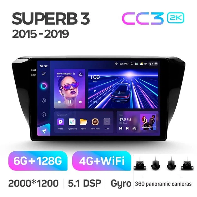 Штатна магнітола з круговим оглядом TEYES CC3 6+128 GB 360° SKODA SUPERB 3 2015-2019 10" 2K