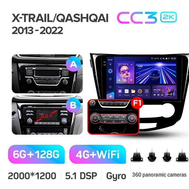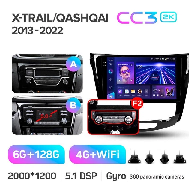 Штатна магнітола з круговим оглядом TEYES CC3 6+128 GB 360° NISSAN X-TRAIL X TRAIL 3 T32 MANUAL AIR CONDITIONING