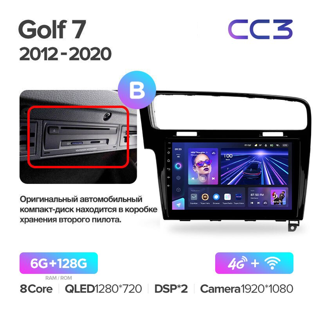 Штатна магнітола Teyes для Volkswagen Golf 7 2012 — 2020 рамка BLACK Android CC3 6+128G Wi-Fi Варіант А