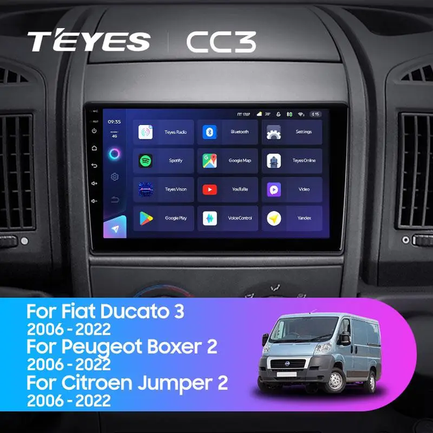 Штатна магнітола Teyes CC3 2K 4+64 Gb Fiat Ducato 3 Peugeot Boxer 2 Citroen Jumper 2 2006-2022 (B) 9"