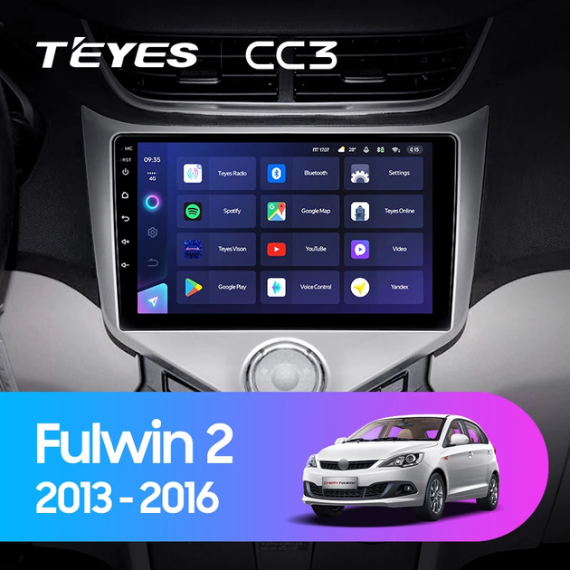 Штатна магнітола Teyes CC3 2K 6+128 Gb 360° Chery Fulwin 2 Very A13 2013 - 2016 9"