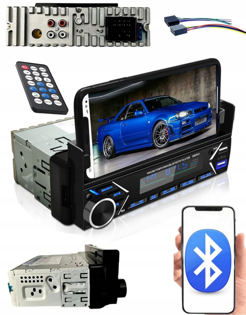 Автомагнітола MP3 7001 BT, 1din, з тримачем для телефону, bluetooth та usb-входом, FM-радіоприймач, Чорна