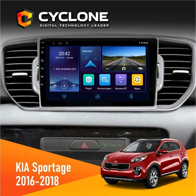 Штатна магнітола Cyclone C9-001 1/32Gb KIA Sportage 2016-2018 з великим екраном