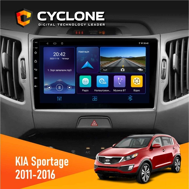 Штатна магнітола Cyclone C9-001 1/32Gb KIA Sportage 2011-2016 з великим екраном