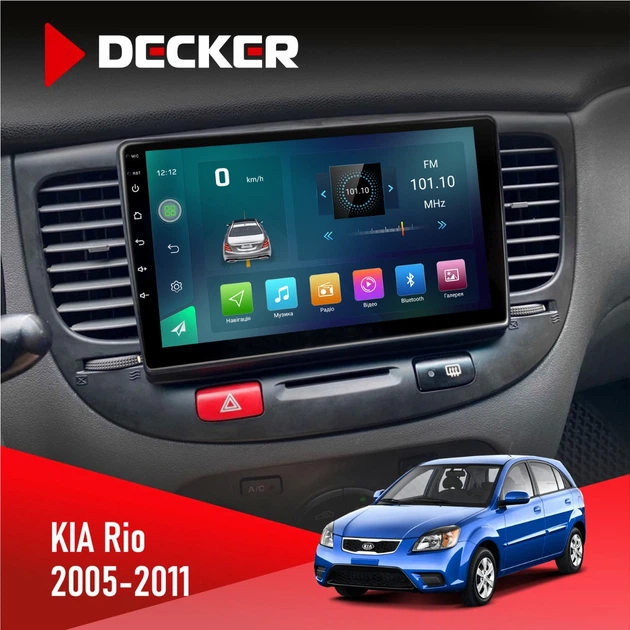 Штатна магнітола KIA Rio (JB) 2005-2011 Black DECKER D9-005 4X64, DSP, 360, 4G, 2K