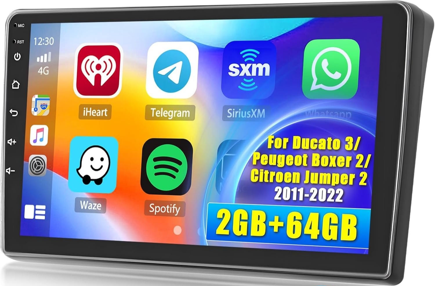 Штатна автомагнітола BXLIYER для Fiat Ducato/Citroen Jumper/Peugeot Boxer / 9" / Сенсорна / 4/64Гб / Android 13 / Apple CarP