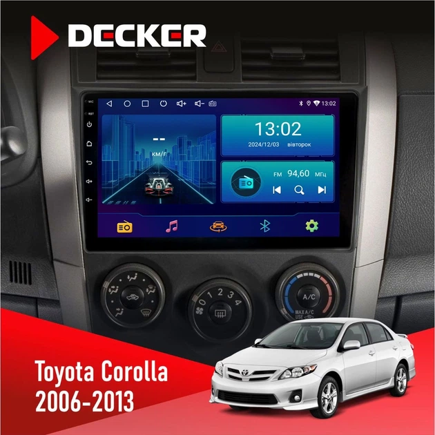 Штатна магнітола Toyota Corolla 2006-2013 DECKER D9-001 4X64, DSP