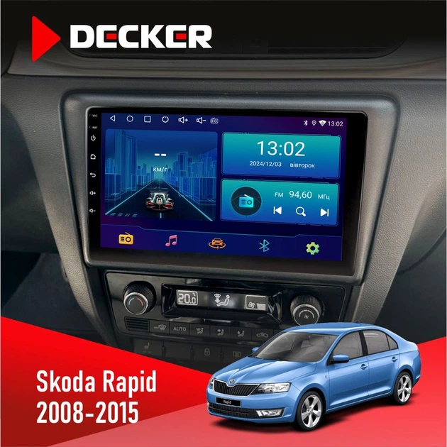 Штатна магнітола Skoda Rapid 2013-2018 DECKER D9-001 4X64, DSP