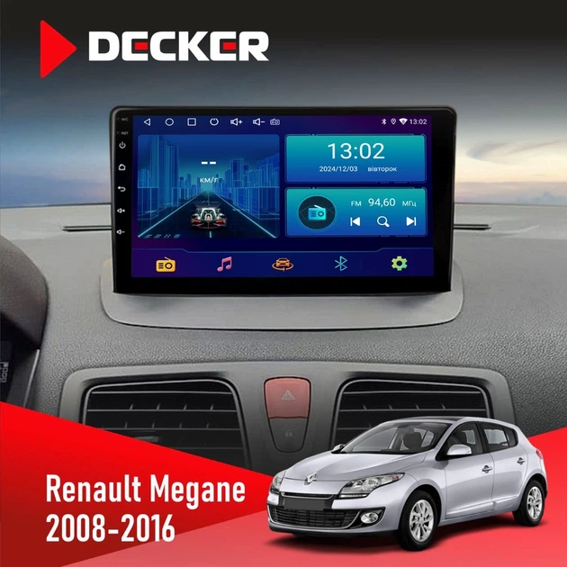 Штатна магнітола Renault Megane III 2008-2016 DECKER D9-001 4X64, DSP