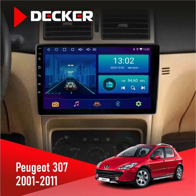 Штатна магнітола Peugeot 307 2001-2011 DECKER D9-001 4X64, DSP