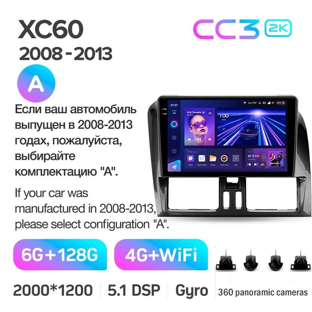 Штатна магнітола з круговим оглядом TEYES CC3 6+128 GB 360° VOLVO XC60 I 1 (A) 2008-2013 9" 2K (L1)