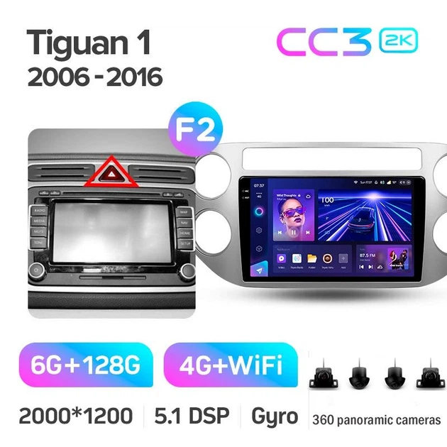 Штатна магнітола з круговим оглядом TEYES CC3 6+128 GB 360° VOLKSWAGEN TIGUAN 1 NF 2006-2017 (F2) 9" 2K