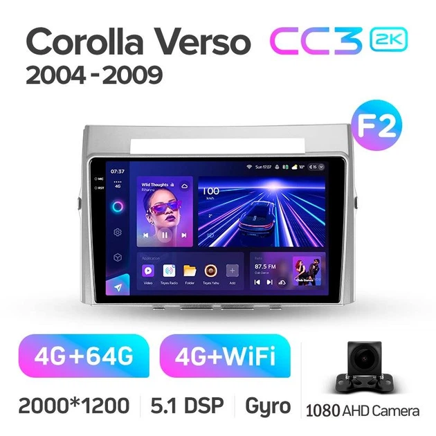 Штатна магнітола TEYES CC3 4+64 GB TOYOTA COROLLA VERSO AR10 2004 - 2009 (F2) 9" 2K