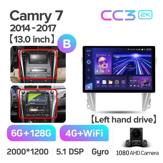 Штатна магнітола TEYES CC3 6+128 GB TOYOTA CAMRY 7 XV 50 55 2014-2017 (B) 13" 2K