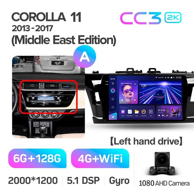 Штатна магнітола TEYES CC3 6+128 GB TOYOTA COROLLA 11 MIDDLE EAST 2013-2017 (A) 10" 2K