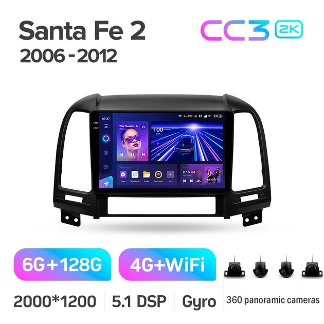 Штатна магнітола з круговим оглядом TEYES CC3 6+128 GB 360° HYUNDAI SANTA FE 2 2006-2012 9" 2K