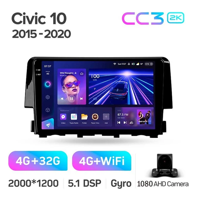 Штатна магнітола Teyes CC3 4+32 Gb Honda Civic 10 FC FK 2015-2020 9"