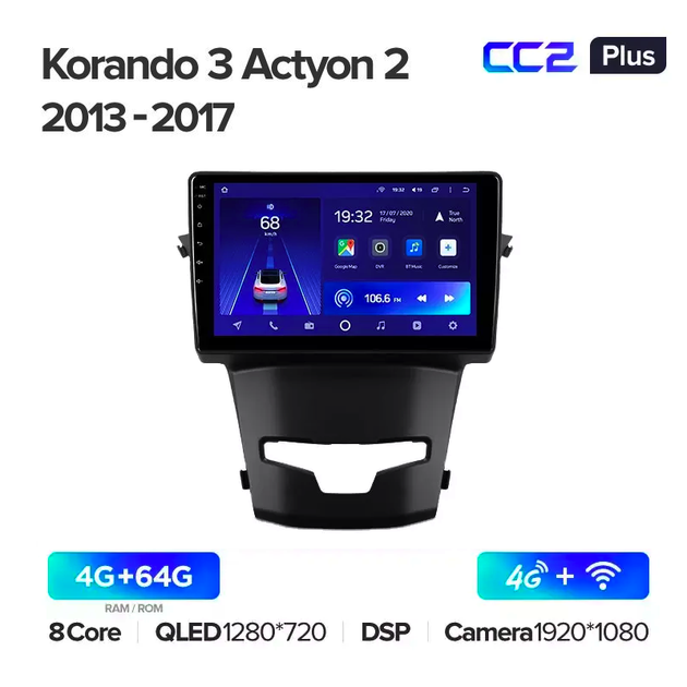 Штатна магнітола Teyes CC2 Plus для SsangYong Korando 3, Actyon 2 2013 - 2017 Android CC2 PLUS 4+64G Wi-Fi+4G