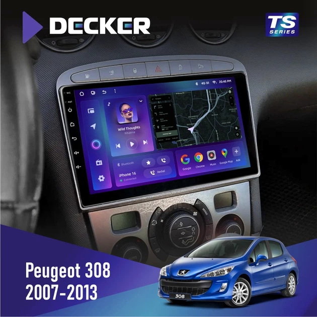 Штатна магнітола Peugeot 308 2007-2013 Silver DECKER TS TS9-002 4X32, DSP, 4G