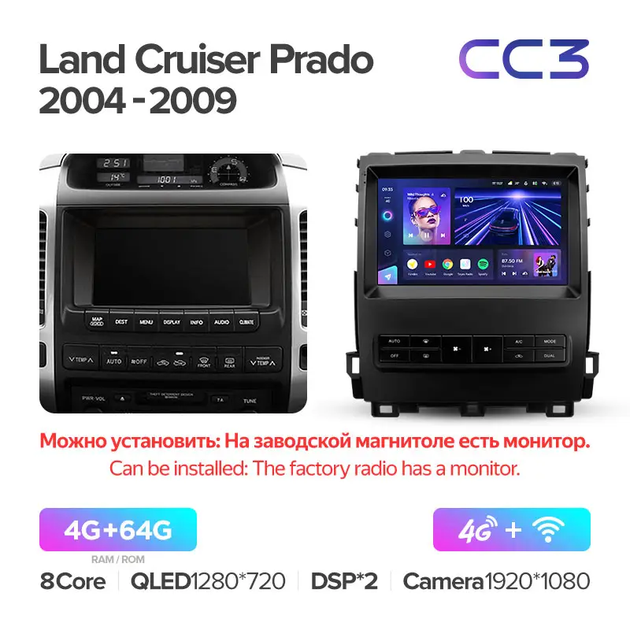 Штатна магнітола Teyes CC3 для Toyota Land Cruiser Prado 120 2002 - 2009 Android CC3 4+64G Wi-Fi+4G
