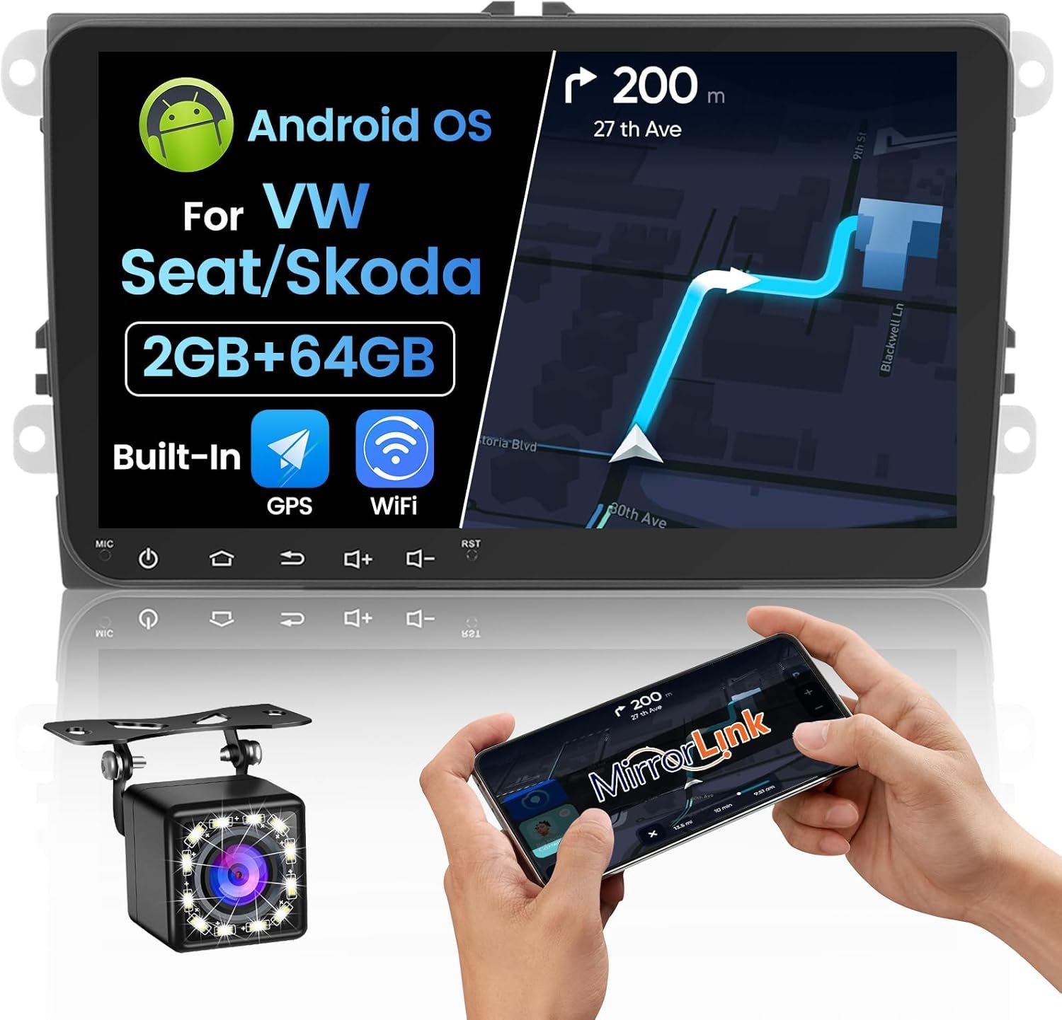 Штатна автомагнітола AWESAFE для Golf 5 6 VW Passat Polo Seat Skoda / 7" / Сенсорна / 2/32Гб / Android 13 / Bluetooth / WI-F