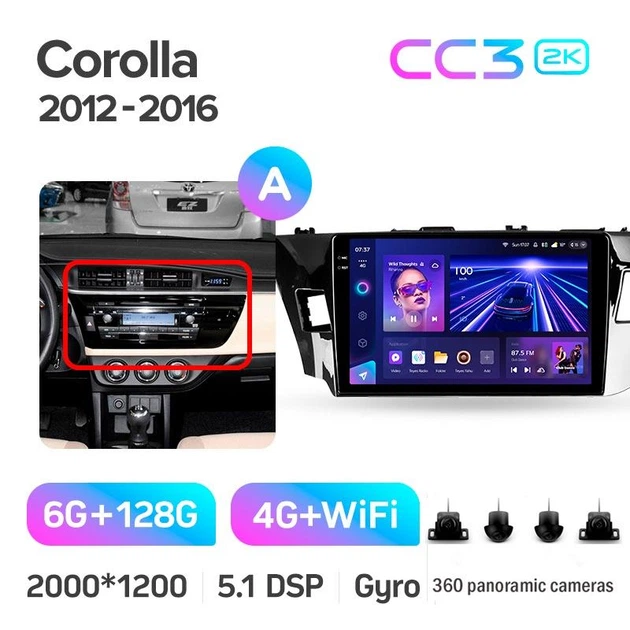 Штатна магнітола з круговим оглядом TEYES CC3 6+128 GB 360° TOYOTA COROLLA 11 2012-2016 (A) 10" 2K