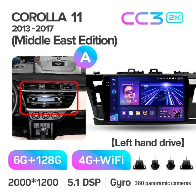 Штатна магнітола з круговим оглядом TEYES CC3 6+128 GB 360° TOYOTA COROLLA 11 MIDDLE EAST 2013-2017 (A) 10"