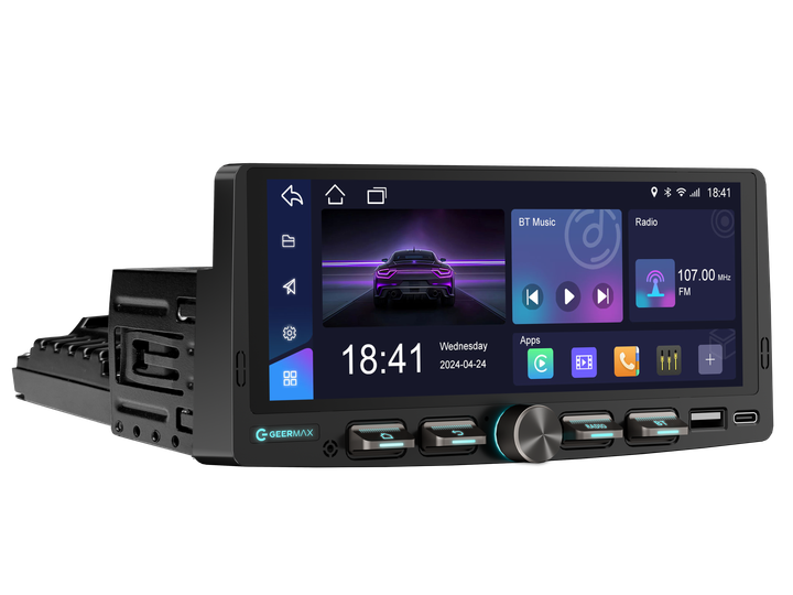 1DIN Автомагнітола з Виїзним екраном Podofo 7" висувним сенсорним дисплеєм Bluetooth/MP3/MP5/