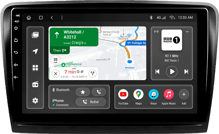 Вибір кольору підсвітки; Діапазони тюнера: FM/AМ;ять (ГБ): 32; Вбудована пам' Для камери заднього виду; Лінійний вхід (AUX); Вихід на сабвуфер; Відеовихід (шт.): 2; Лінійний вихід: 2; Підключення АС: ISO/RCA; DSP процесор; Кількість каналів: 4; Потужність на канал (Вт): 60; Вбудований модем: 4G (LTE) модем; Wi-Fi модуль; Bluetooth; Мультимедіа: GPS-модуль; Сенсорний екран; Діагональ дисплея ("): 10; Панель: Типи носіїв: USB-накопичувач (тиловий); Штатна магнітола для: Skoda Octavia (2008-2013); Укорочений корпус; Монтажний розмір: штатна; Область застосування: автомобільна