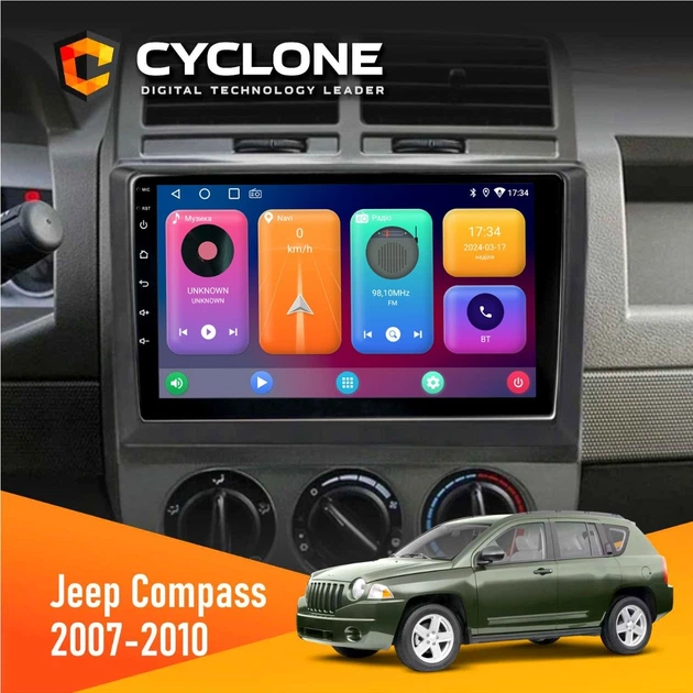 Штатна магнітола Jeep Compass 2007-2010 CYCLONE C10-002 2X32, 4G, 2K