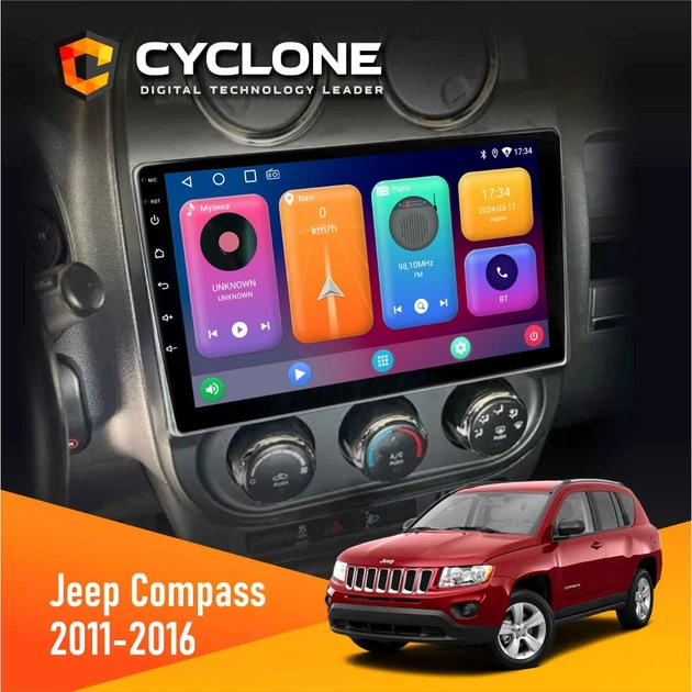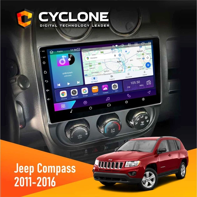 Штатна магнітола Jeep Compass, Patriot 2011-2016 CYCLONE C10-002 2X32, 4G, 2K
