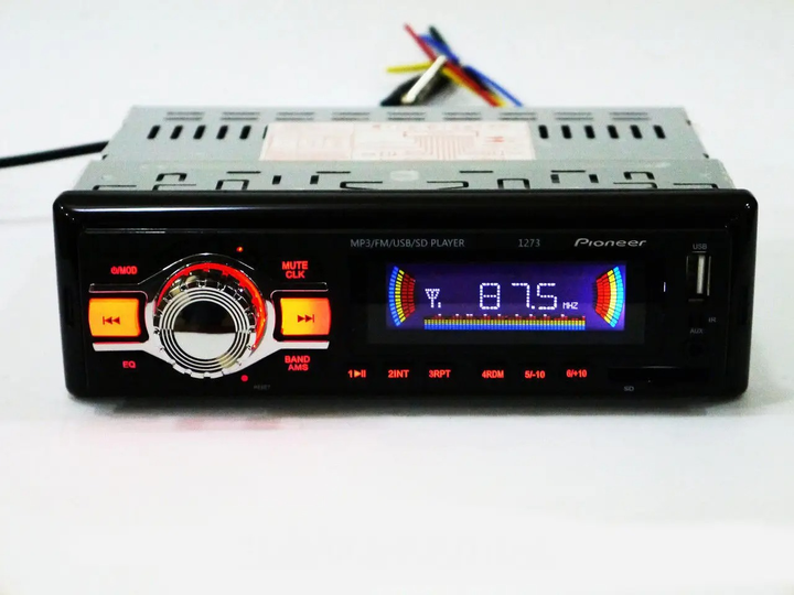 Автомагнітола Pioneer 1273 ISO 1DIN 4х50W + MP3/microSDSD/MMC/USB/FM/AUX + пульт ДУ Чорний (10553)