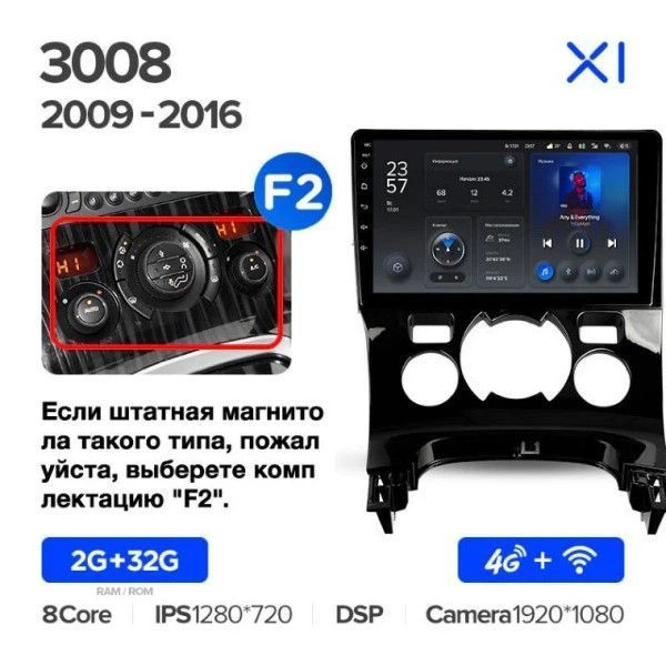 Штатна магнітола Teyes X1 2+32Gb Peugeot 3008 1 2009-2016 - B 9"