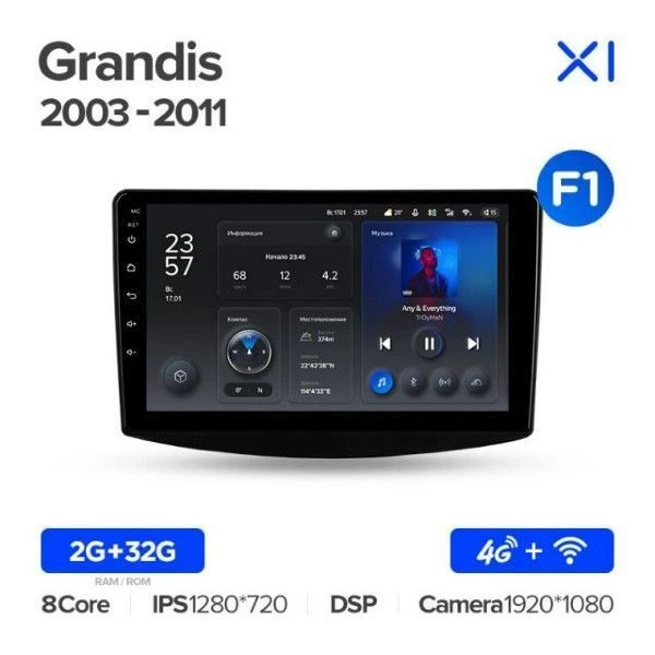 Штатна магнітола Teyes X1 2+32Gb Mitsubishi Grandis 1 (B) 2003-2011 9"