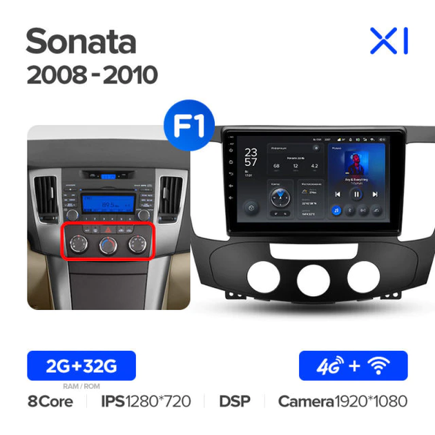 Штатна магнітола Teyes X1 2+32Gb Hyundai Sonata NF (A) 2008-2010 9"