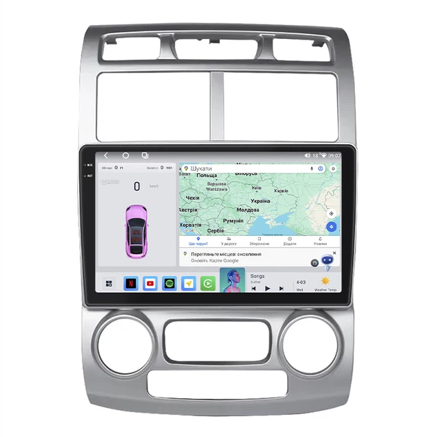 Магнітола Lesko для Kia Sportage II 2004-2008р 9" 4/64 QLED CarPlay 4G Wi-Fi GPS 360 Prime Спортаж