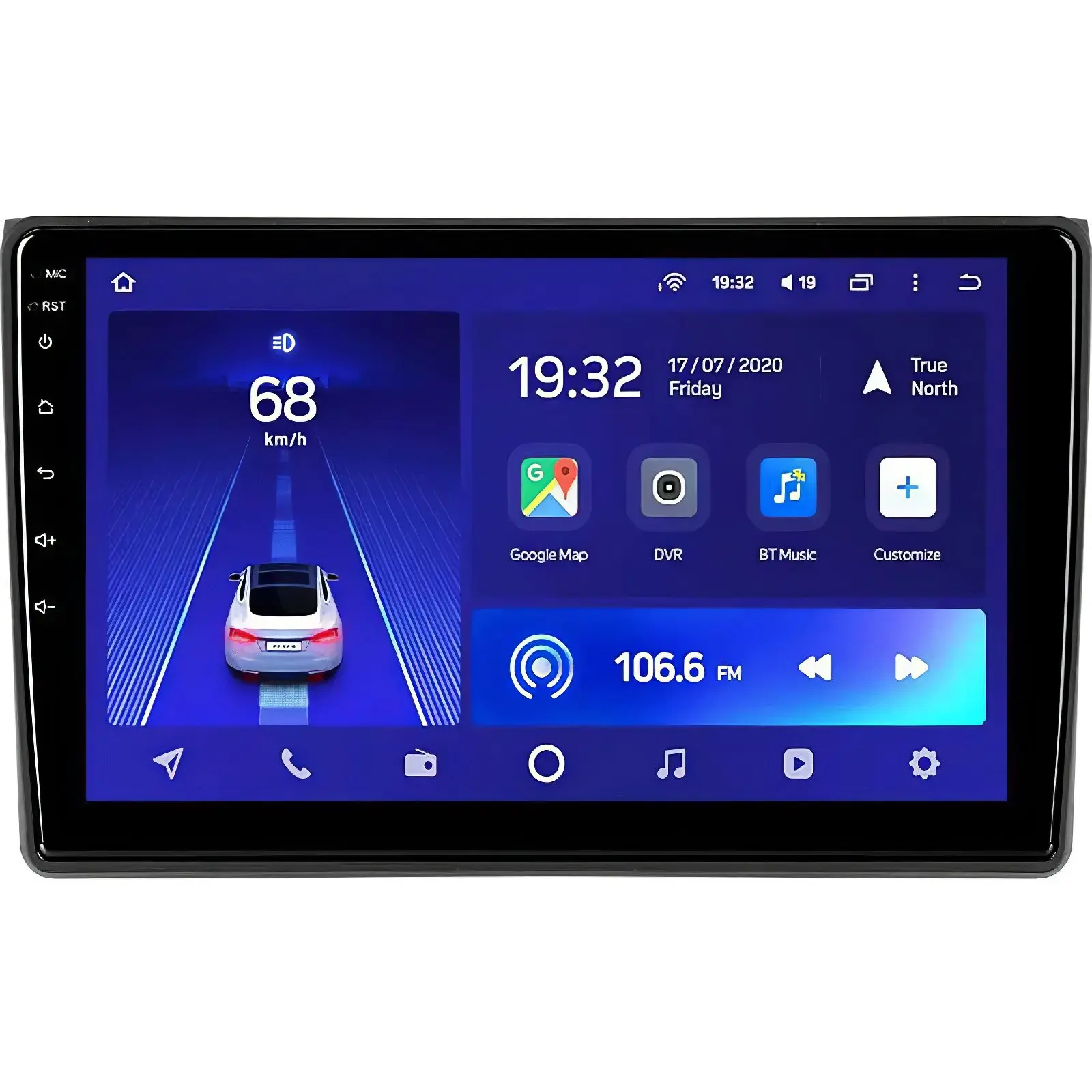 Розмір (ШхВхГ) - 9" (230/220х130х55 mm), екран 9" (1280x720), OS Android 10, пам'ять RAM/ROM - 2/32, процесор - 4ядерний Allwinner A100, CarPlay, Android Auto, Wi-Fi, GPS, Bluetooth 5,4, підсилювач YD-7388 IC, потужність – 4х45W. Підключення камери заднього/переднього виду – AHD/TVI/CVBS. Виходи - 2+1 Line out RCA+SUB
