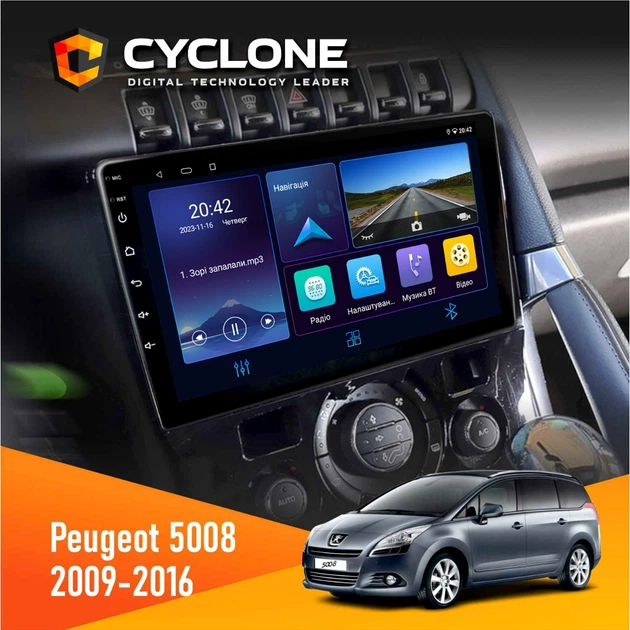 Штатна магнітола Cyclone C9-006 DVR. 2+32Gb. DSP. CARPLAY Peugeot 5008 2009-2016 condition