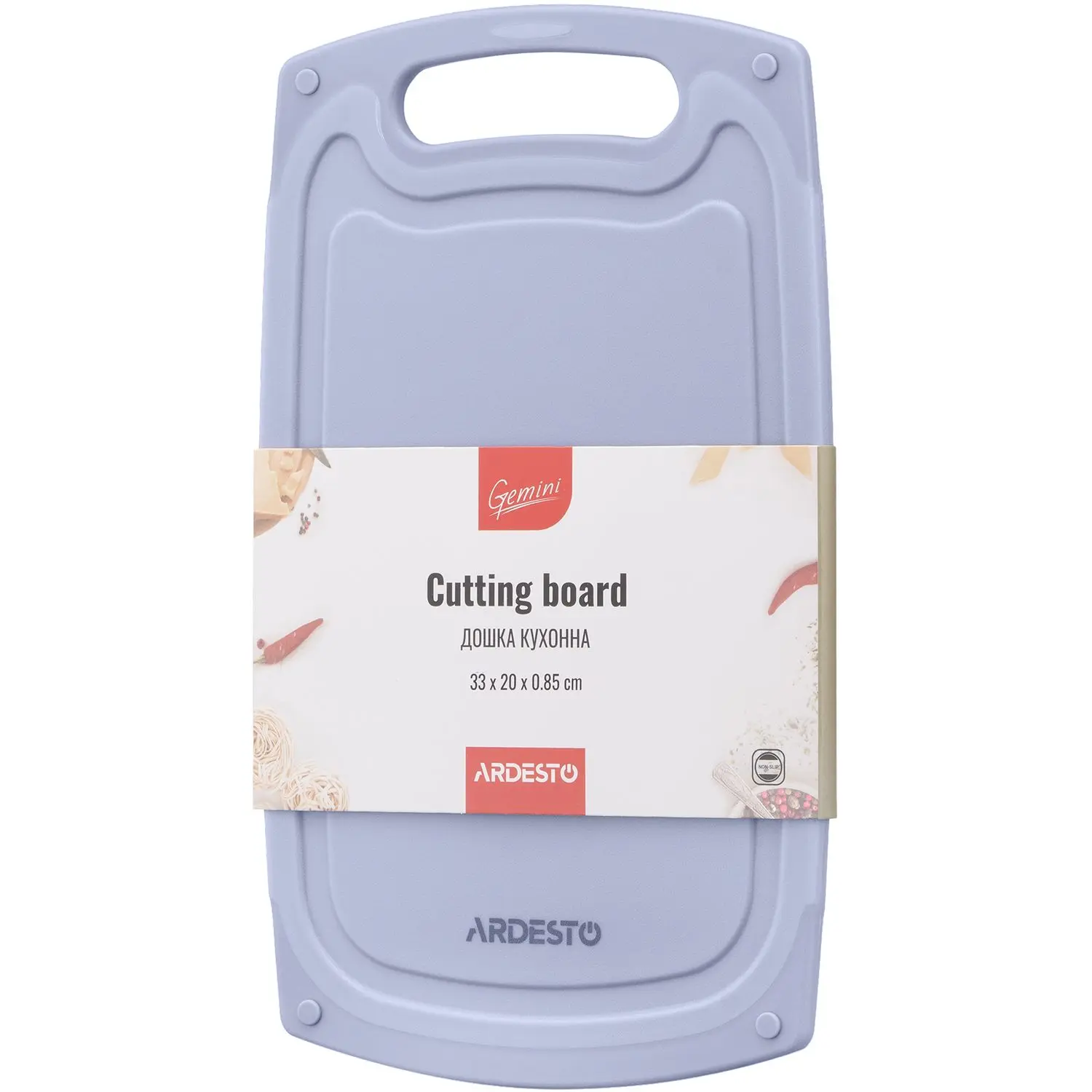 Надійний помічник на кухні Кухонна дошка Ardesto Gemini сірого кольору – вкрай необхідний аксесуар на кожній кухні. Виріб виготовлено з харчового пластику – безпечного для здоров’я та практичного матеріалу, та термостійкої гуми. Дошка не виділяє та не вбирає запахів і рідини. Аксесуар має протиковзкий борт із жолобом, зумовлюючи зручність і безпеку використання. Вона не займатиме багато місця. Невелика вага зумовлює легкість використання. Виріб можна мити в посудомийній машині.