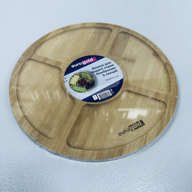 Дошка для подачі страв бамбукова 5 секцій 25 см кругла Eurogold 7112901416