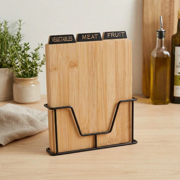 Набір бамбукових кухонних дощок на підставці 3 шт ARDESTO Midori комплект кухонні дошки для нарізки 23.5х7.5х27 см з бамбука