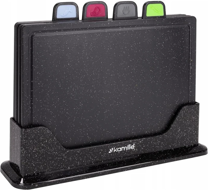 Комплект обробних дощок Kamille 4 шт на підставці пластик для кухні нарізки продуктів 29x23 см (563424)