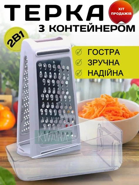 Зручна терка з контейнером двостороння велика та дрібна леза у двох напрямках