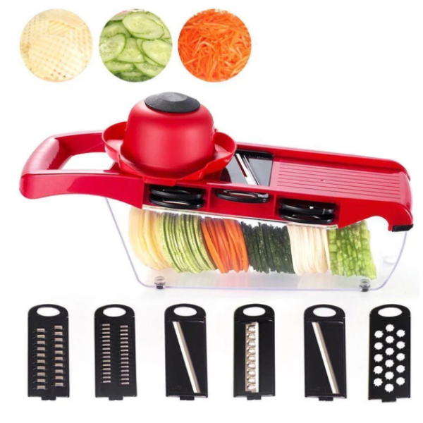 Мультислайсер Овочерізка для овочів і фруктів Mandoline Slicer 6 in 1 Червоний c контейнером (FG22)