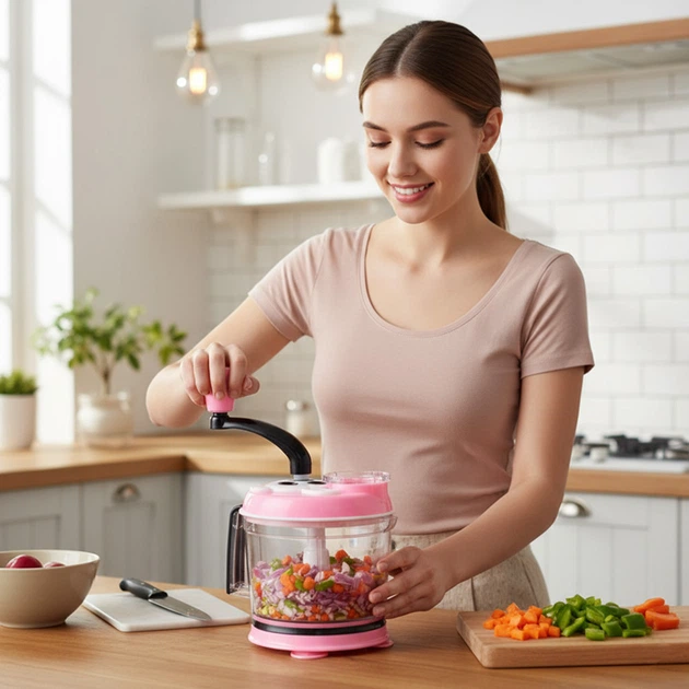 Ручний подрібнювач овочів чоппер для швидкого нарізування зелені фруктів та горіхів компактний рожевий