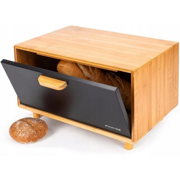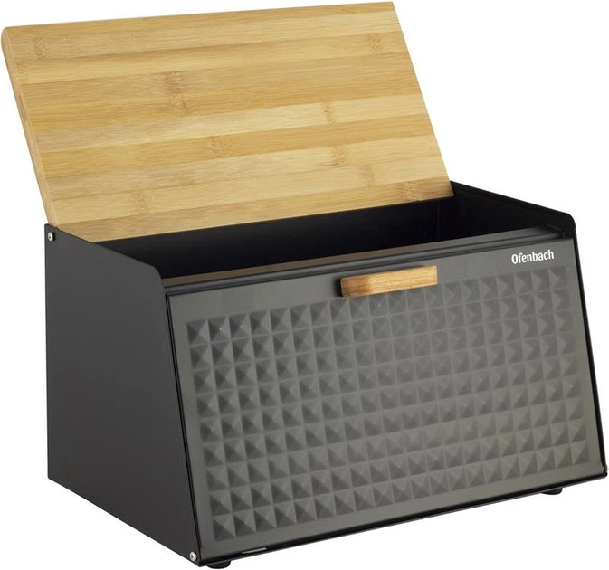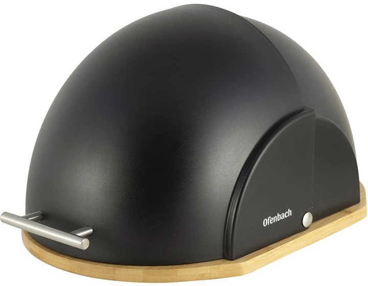 Хлібниця Ofenbach з нержавіючої сталі з бамбуковою кришкою чорна для зберігання хліба та булочок (564061)