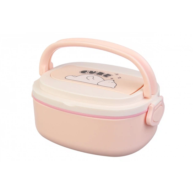 Ланч бокс з харчового пластика з ложкою 900 мл Рожевий