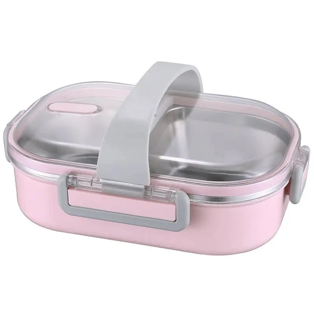 Термо ланч бокс з металевою основою, ручкою і ложкою Crystal 700 мл, рожевий